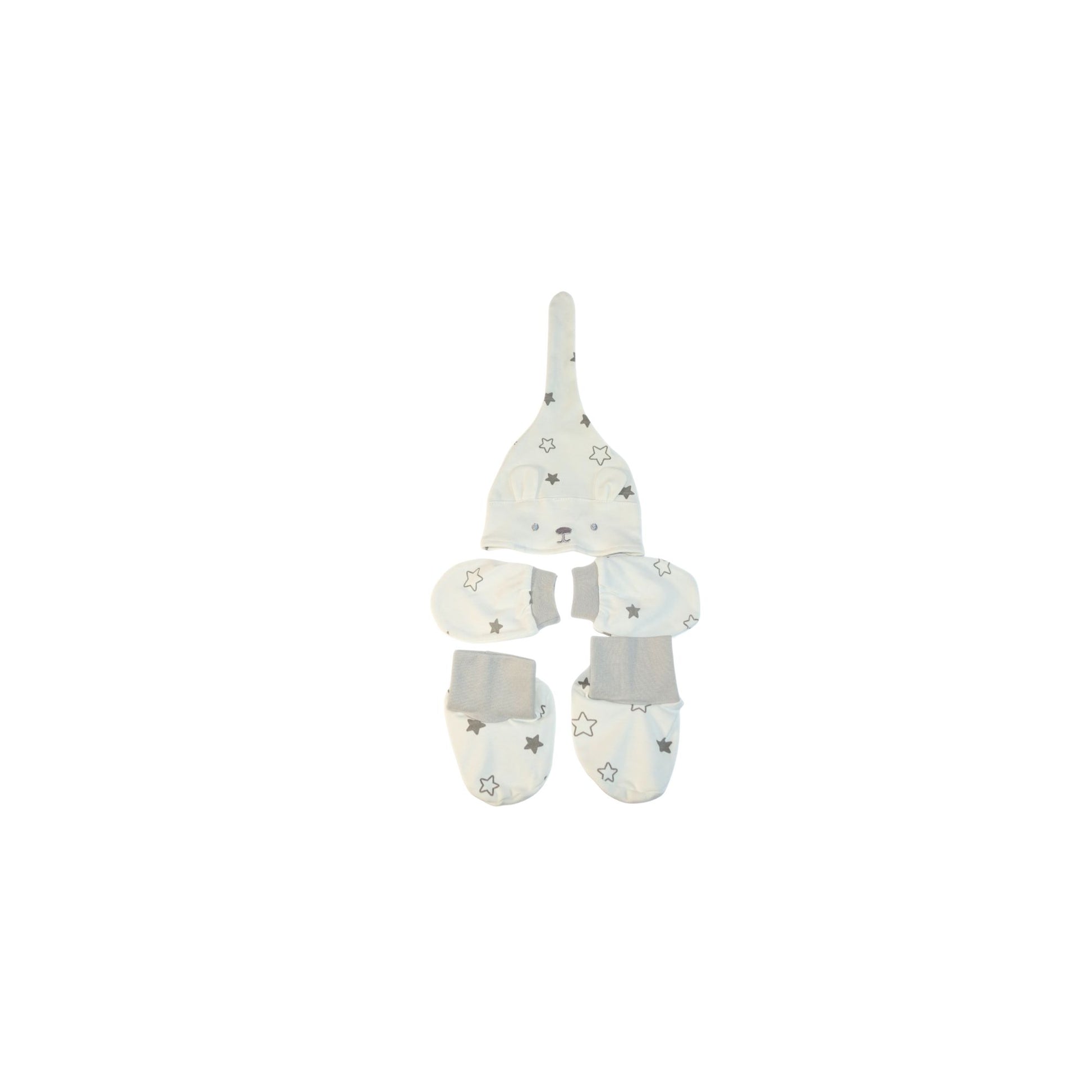 De verfijnde grijs- en wittinten, gecombineerd met de subtiele sterrenprint, geven deze box een rustige en tijdloze uitstraling. Van comfortabele rompertjes en accessoires tot een lieve knuffel: elk item is met zorg gekozen en met oog voor detail afgewerkt.